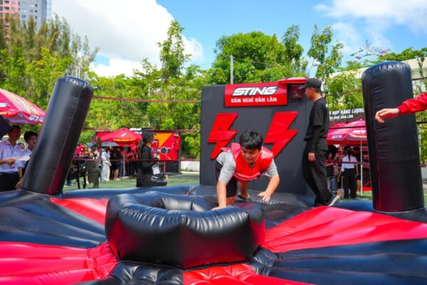Buổi sáng, không khí tại khuôn viên sân bóng đã “nóng” lên với hàng loạt mini game, thử thách thể lực, quầy quà tặng và khu trải nghiệm năng động do Sting tổ chức. Đặc biệt, đội hình hoạt náo viên cực “cháy” của chương trình đã khuấy động tinh thần tuổi trẻ, tạo nên bầu không khí sôi nổi, hào hứng lan tỏa khắp khuôn viên trường. Sinh viên các trường đều nhiệt tình tham gia, giao lưu và cổ vũ, sẵn sàng cho đêm hội đầy cảm xúc.